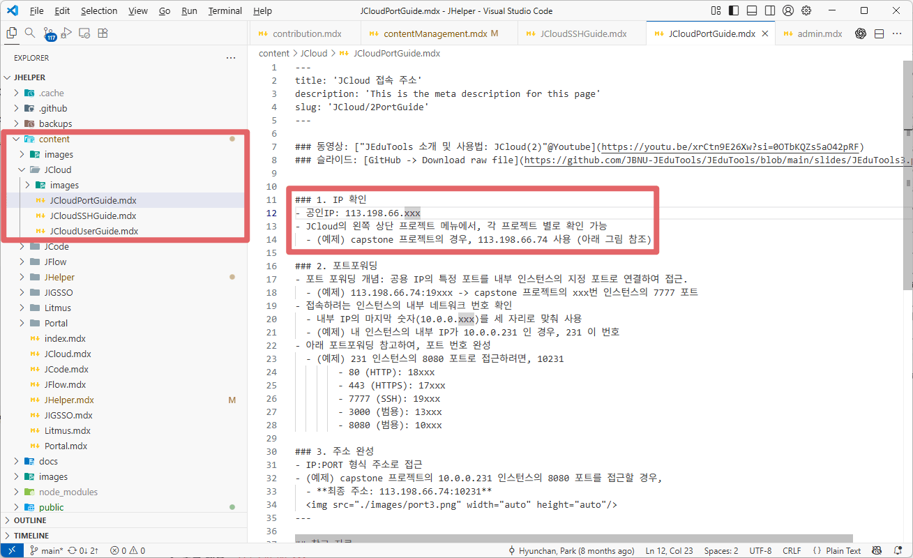 [프로젝트 폴더]/content/JCloud/JCloudPortGuide.mdx