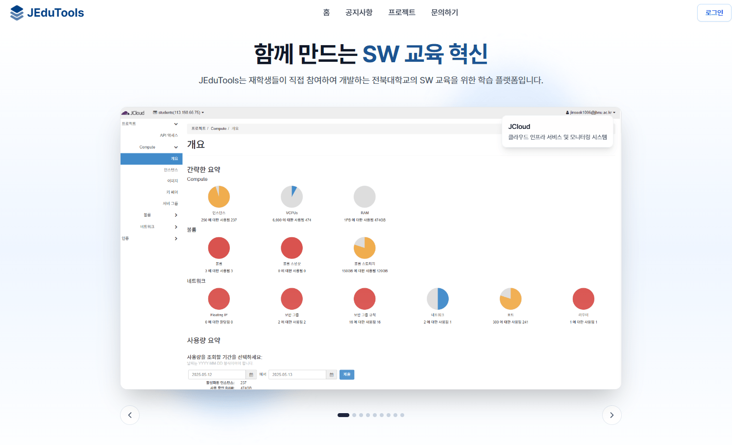 Portal 은 JEduTools 통합 로그인을 제공하고, 각 프로젝트 링크를 제공하는 대표 랜딩 페이지 입니다.